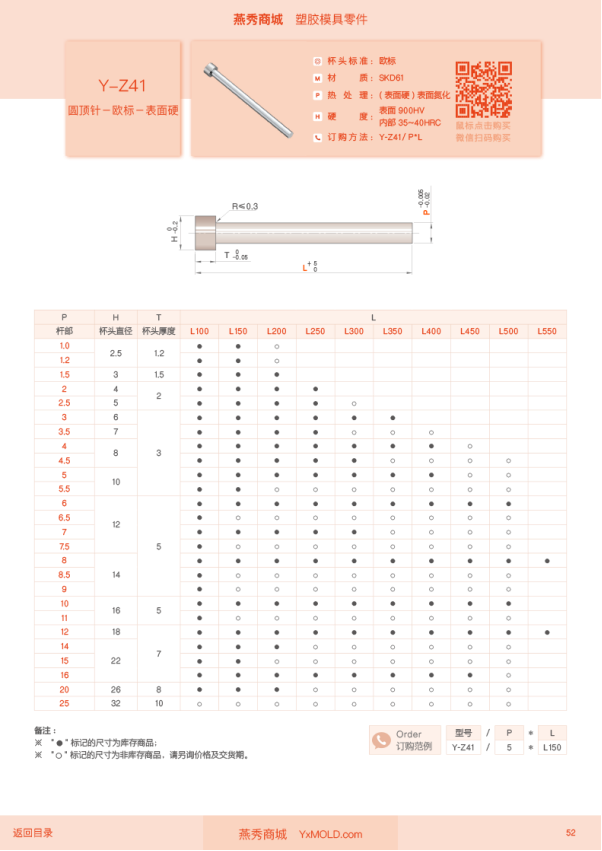 Y-Z41 圆顶针-欧标-SKD61表面硬 欧标圆顶针-SKD61表面硬 推杆 顶杆 表面硬 全硬 欧标头 德国头