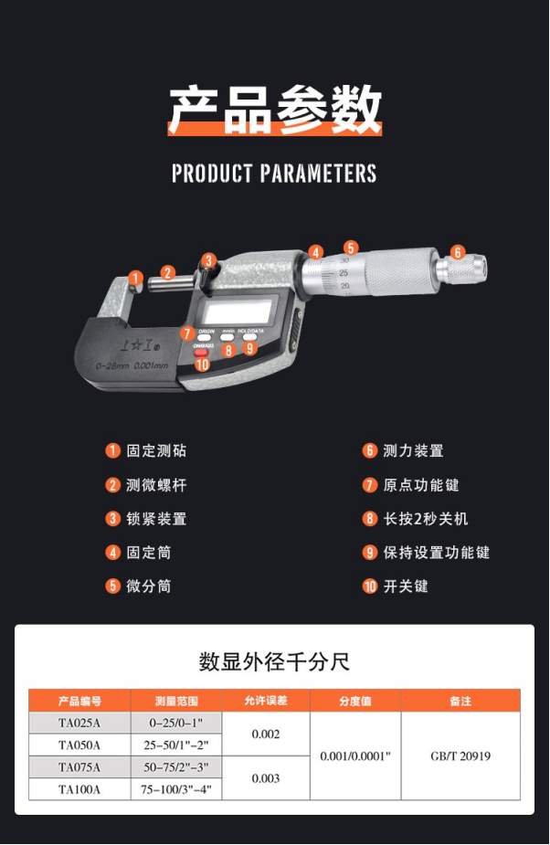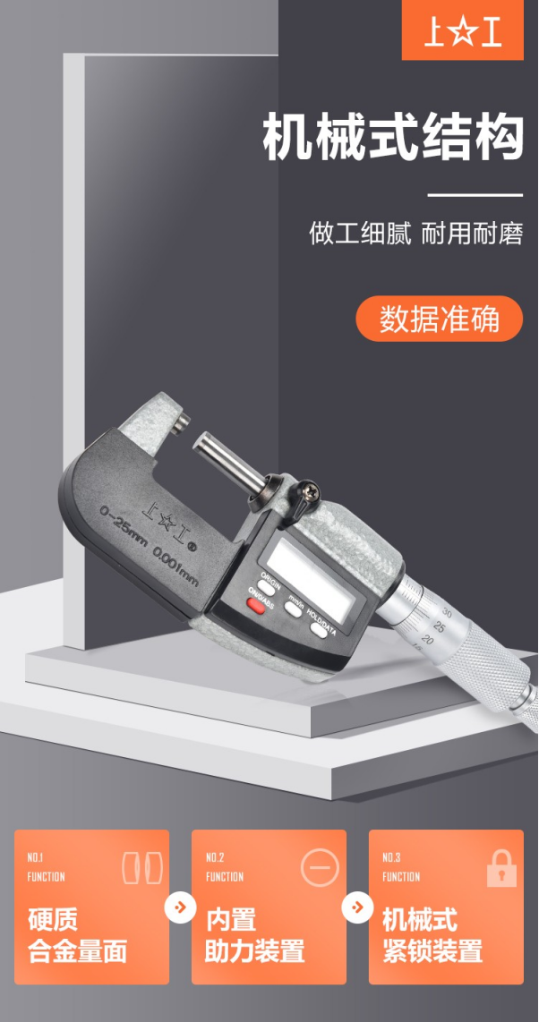 • 上工电子数显外径千分尺 量程0-25-50-75-100mm 数显的卡尺千分尺 螺旋测微仪器 高精度 0-25mm