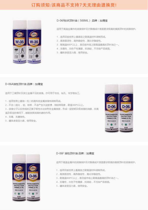 • 顶针油 加得宝 耐高温顶针油 W-35 D-06A D-06F 一箱24支