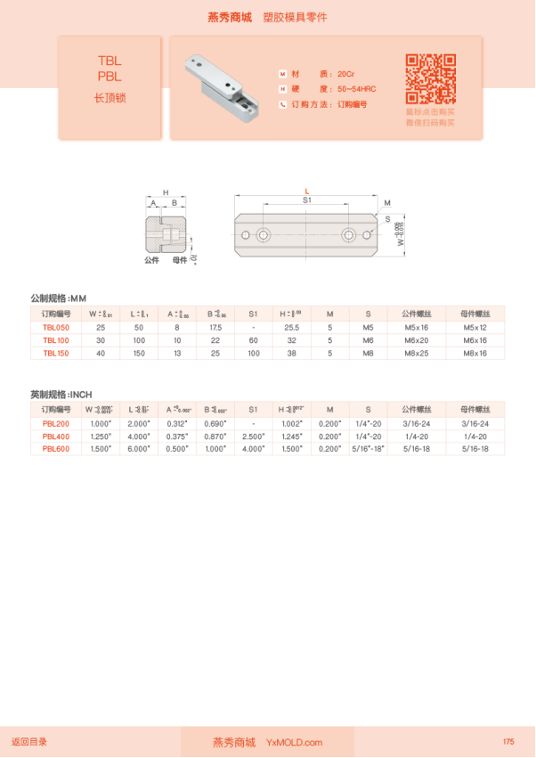 • Y-TBLY-PBL长顶锁-英制长顶锁边顶锁辅助器长型辅助器长形辅助器锥度定位块方型辅助器导柱辅助器